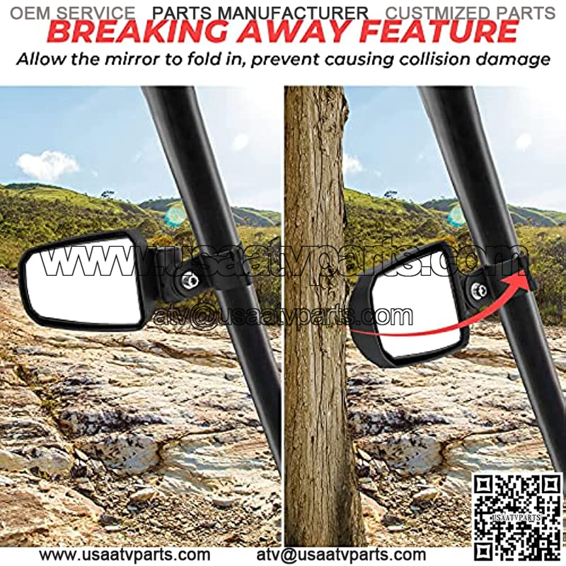 UTV folding side mirrors enable you to tilt the mirror up or down and left or right as you need.