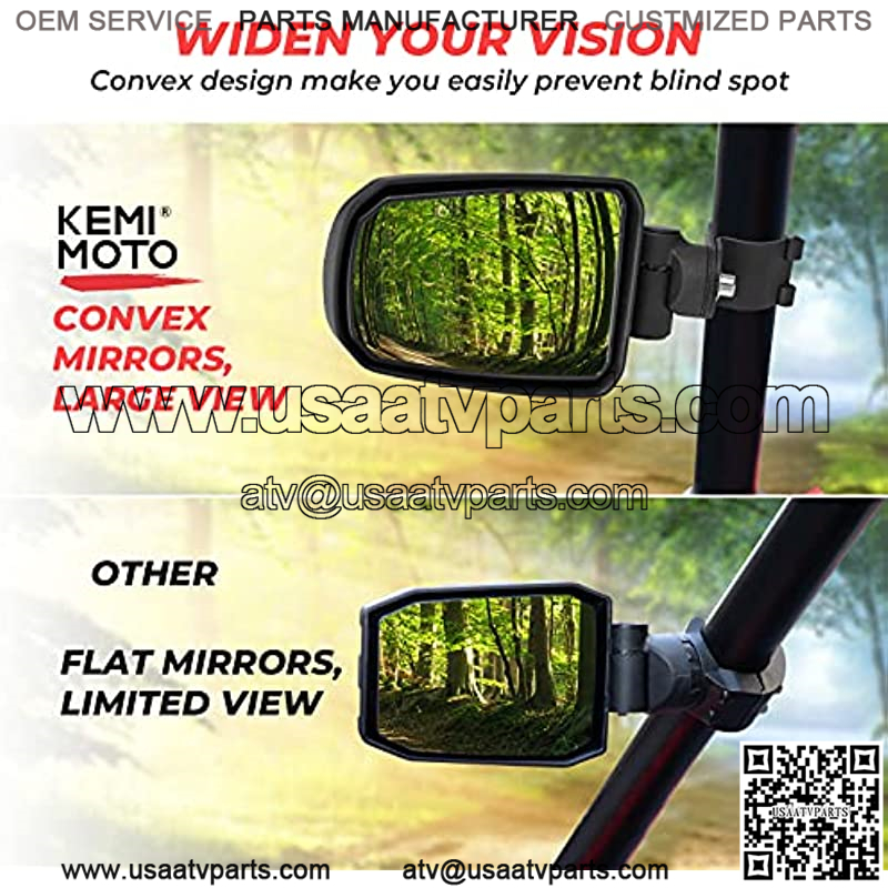 DURABLE & FIT FOR VARIOUS VEHICLE – Made of impact-resistant ABS plastic. 1.75″ roll cage clamp UTV side mirror will compatible with Polaris RZR 570 800 900 1000 XP/ Polaris Ranger 400 500 700 800/ Honda Pioneer 1000/ YXZ1000R/ Rhino Perimeter/ Arctic Cat Prowlers. is committed to becoming a recognized of UTV accessories for off-road enthusiasts. Everything we do is motivated by our mutual passion for off-roading. Starting from the rearview mirror, we covered comprehensive accessories like whip lights and storage boxes fit for UTVs like Polaris, Can-Am, etc. We welcome your recommendations since they help shape into what it is today.