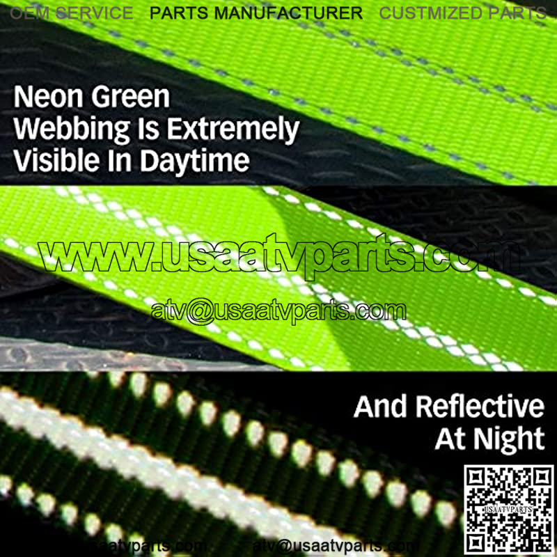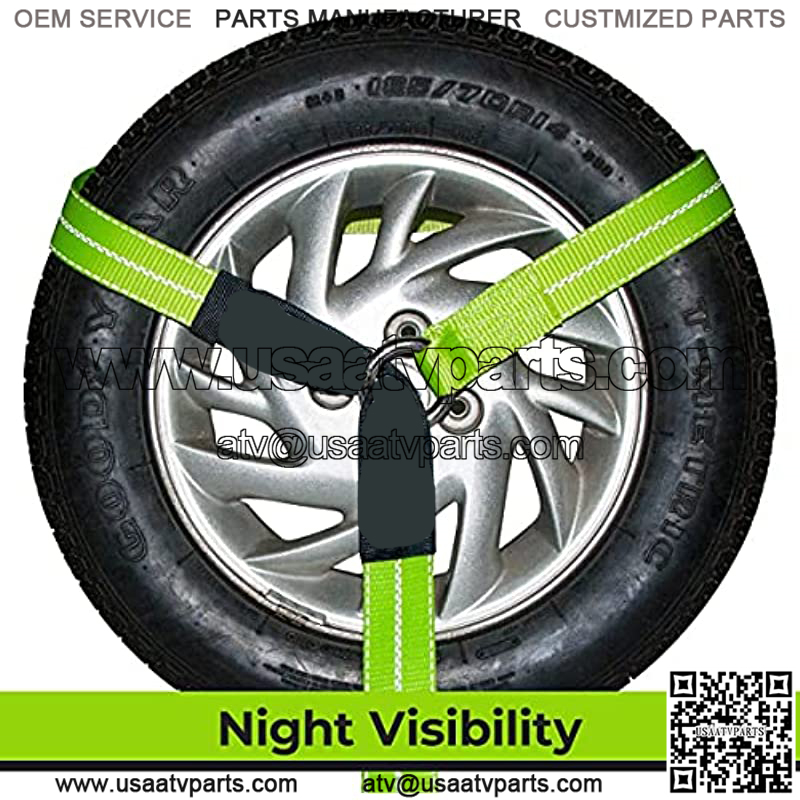 UNIQUE HIGH-VIZ WEBBING – Ultra-bright neon green tire straps are extremely visible in daytime light conditions, and the special retro-reflective fibers shine brightly at night for extra visibility in low light conditions. This extra thick tie down strap is strong for excellent durability and long service life.