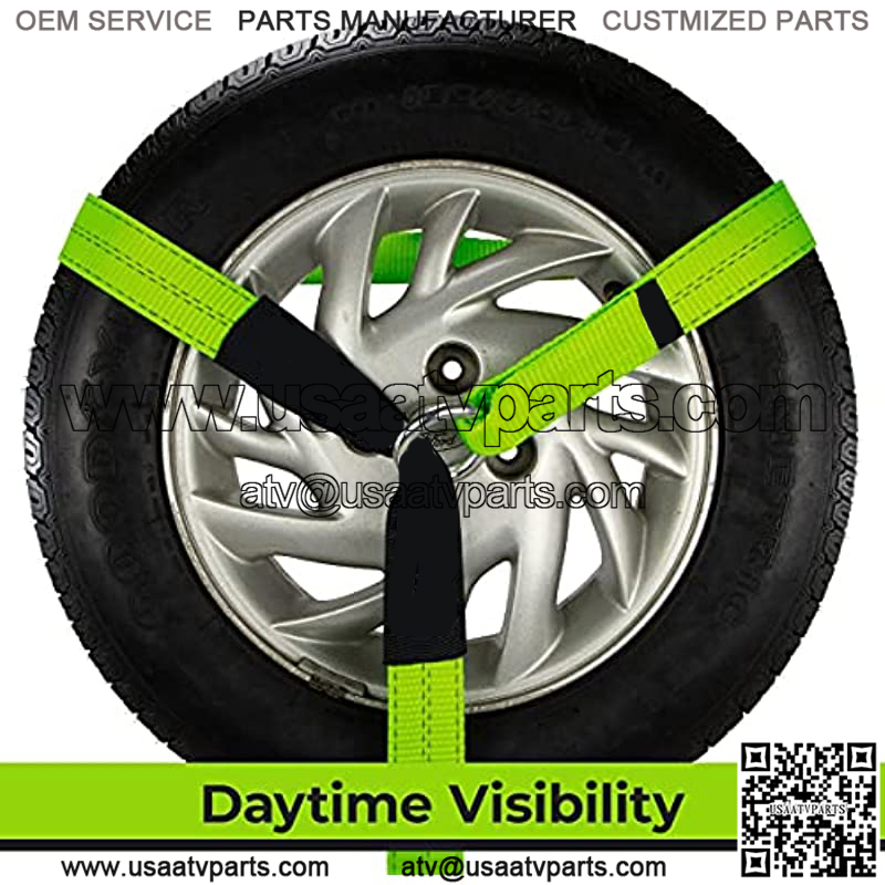 Ultra-bright neon green tire straps are extremely visible in daytime light conditions, and the special retro-reflective fibers shine brightly at night for extra visibility in low light conditions. This extra thick tie down strap is strong for excellent durability and long service life.