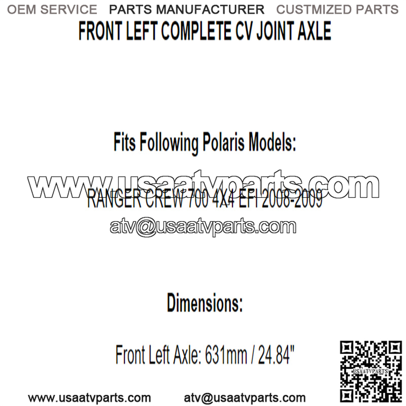 Front Left Axle: 631mm / 24.84″