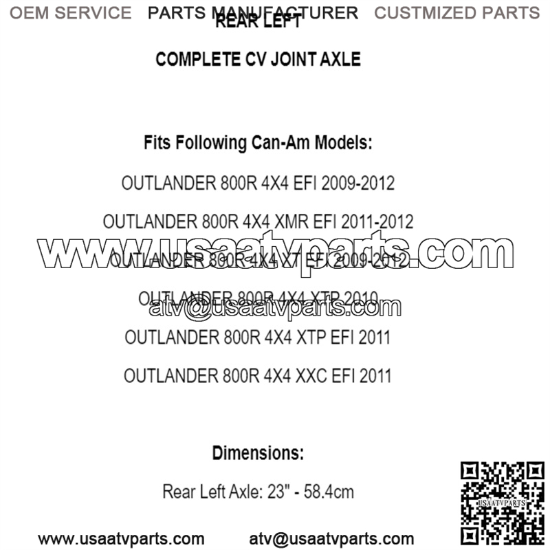 Rear Left Axle: 23″ – 58.4cm