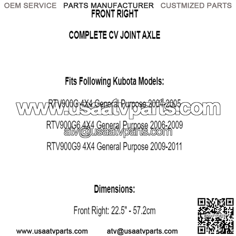 Fits Following Kubota Models: