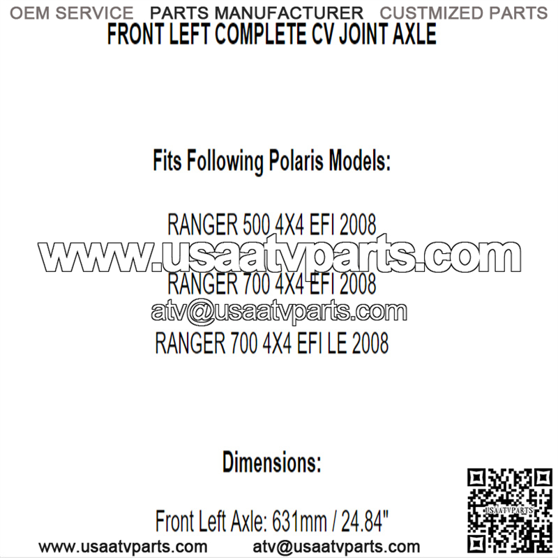 Front Left Axle: 631mm / 24.84″