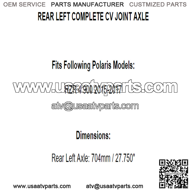 Rear Left Axle: 704mm / 27.750″