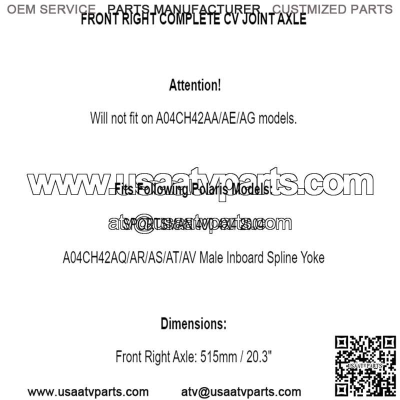 Front Right Axle: 515mm / 20.3″