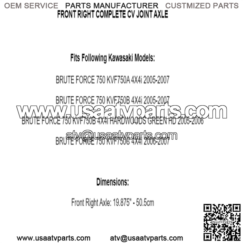 Front Right Axle: 19.875″ – 50.5cm