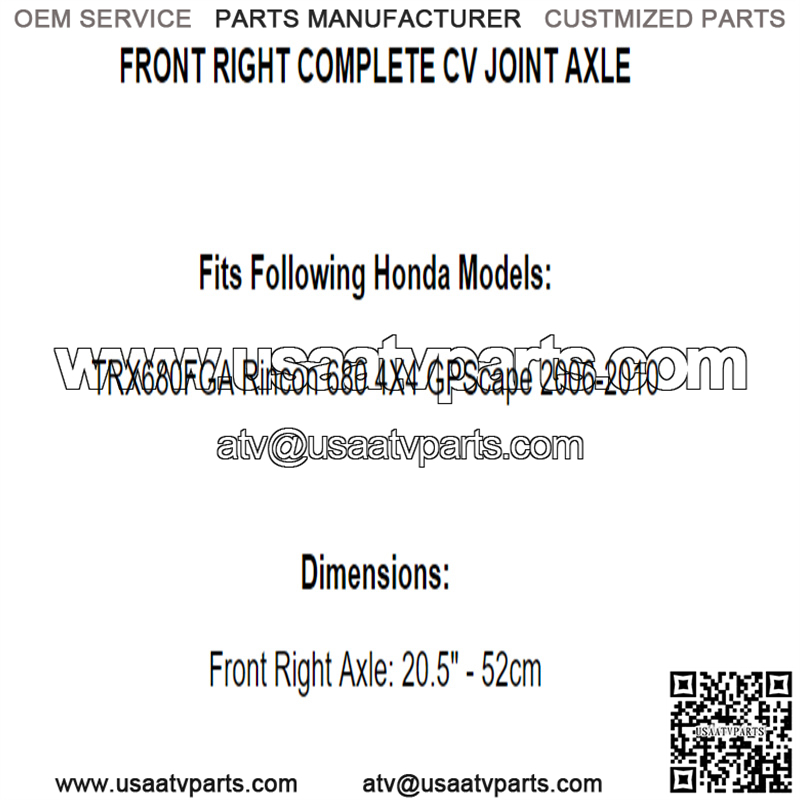 FRONT RIGHT COMPLETE CV JOINT AXLE