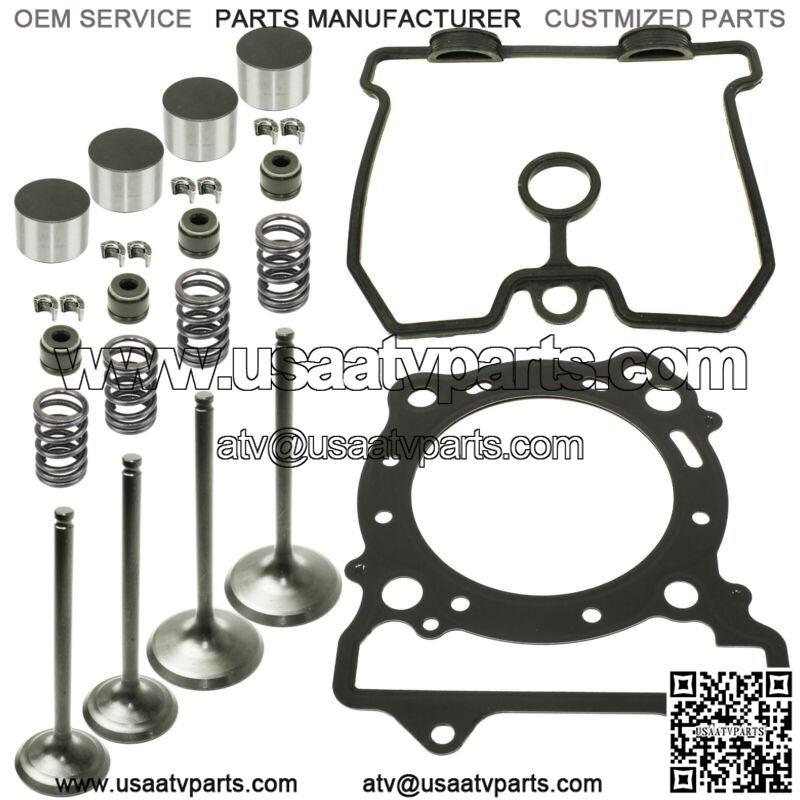 KIT INCLUDES2 Exhaust Valves (53Cr21Mn9Ni4N special steel)2 Intake Valves (53Cr21Mn9Ni4N special steel)4 Valve Springs8 Valve Collets4 Valve Seals4 Valve Tappets1 Cylinder Head Gasket1 Cylinder Head Cover Gasket
