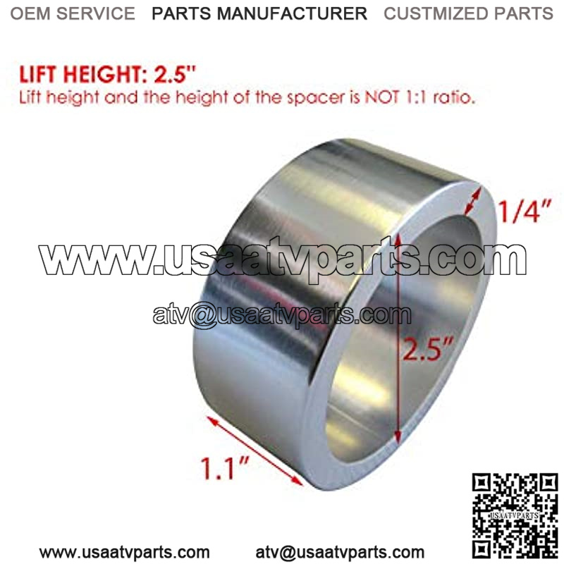 ??IMPORTANCE?? Lifting a vehicle may require additional components for the vehicle to operate correctly and safely. This kit does NOT required any modification to your factory suspension at all. But please do NOTE that this spacer works only with OEM / original shocks! and a proper spring compressor tool will be REQUIRED to safely install these spacers. Such components may include, but are not limited to: Brake lines, clutch lines, throttle cables, and axles. It is the responsibility of the installer to verify the vehicle is operating correctly and safely after the installation of any aftermarket components. Fits: Outlander MAX XT Brp Models Although the height of the spacers are NOT accurately 2″ or 2.5″ but the net lift height will be very close to or exactly 2″ or 2.5″. Please be aware that the lift height and the height of the spacer is NOT 1:1 ratio. Manufactured in the USA. Precision Machined length and outer diameter. This kit raises the front by 2″ or 2.5″, and the rear by 2″ or 2.5??. Our kit will give your UTV or ATV front and rear a real 2″ or 2.5″ while maintaining stock ride quality. This is a very efficient method to eliminate any sag in your stock springs as well as increasing your load capacity. Does not require anymodificationto your factory suspension components. A proper spring compressor tool will be REQUIRED to safely install these spacers.No drilling or welding required. The Kit contains 4 spacers as pictured.