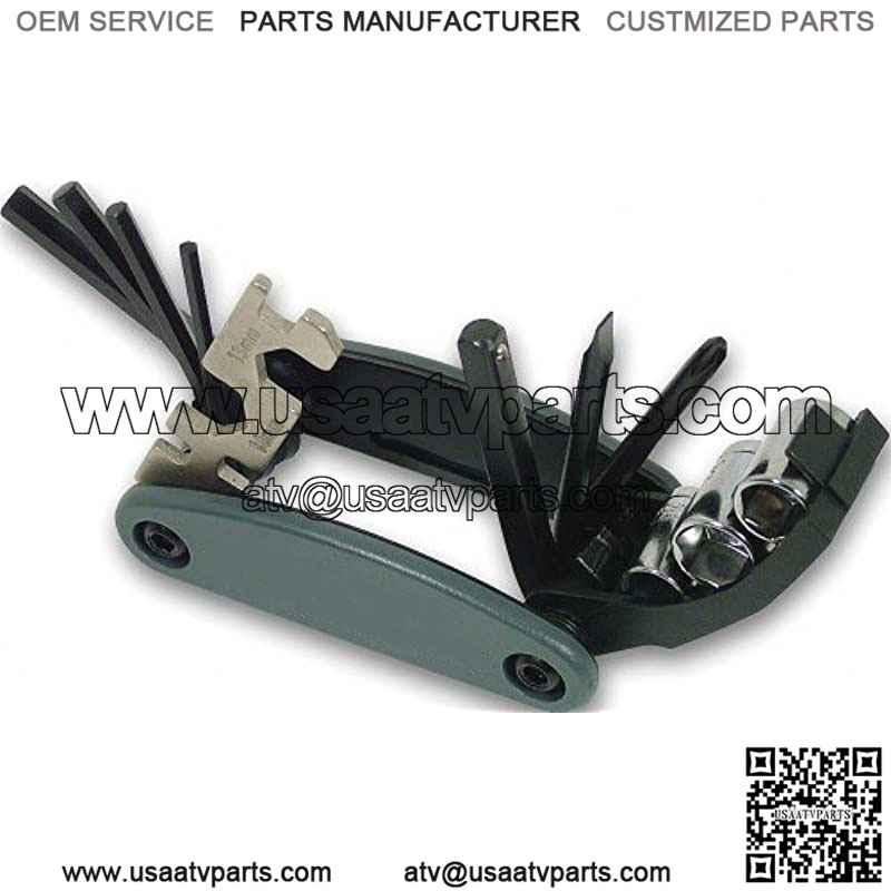 Enough tools to get you out of a jam, but not weigh you down! The Outback??R multi-tool is a must-have for any metric motorcycle, UTV, ATV, PWC, or Snowmobile. The Outback??R OM14, provides 14 tools in a 3.5?? long multitool that weighs only 9-ounces. Includes: 3, 4, 5 and 6mm hex keys, slotted and Phillips screwdrivers, a driver with 8, 10, and 12mm sockets, 13 and 14 mm open-end wrenches and 3 spoke wrenches. . Tool Contents: Hex Keys ?C 3, 4, 5, 6mm, 13 & 14mm open wrenches, 3 sizes of spoke wrench, Slotted & Phillips screwdrivers, 8, 10, 12mm sockets & 1/4?? driver