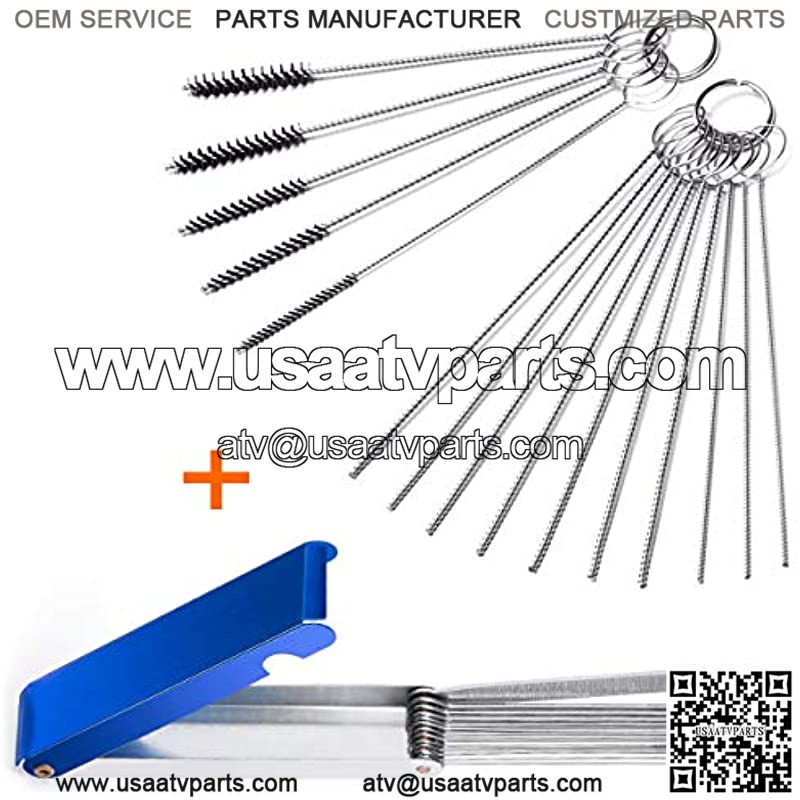 15 PCS carburetor cleaning brush carb cleaner kit, reliable and durable, made up of stainless steel and nylon bristles. It??s excellent rust-proof, flexible and lint-free, special spiral design for the brushes can contact well with the inner side of container for more thorough cleaning, solving the gap and blind angle problem that normal tools have. Easy to carry and store for a lightweight and compact design. Each set of 10 needles and 5 brushes comes with a detachable key ring for quick and easy access. All brushes have a convenient loop at the end of the handle to hang when not in use or to reattach to the key ring for safe keeping. Also perfect tools for cleaning glasses, tubes, keyboards, home appliances and so on. Different diameters of 13 piece wires set with spiral knurling will fit most carburetors. Come with a lightweight, compact aluminum carrying case, a great tool keep on hand. This pack of tool will help your machine running fine and not starving for fuel or flooding. It??s specifically designed to clean out the tiny jets and carb passages from all dirt.
