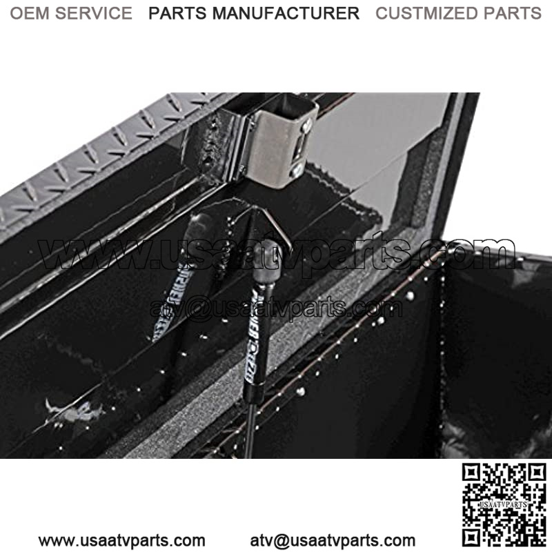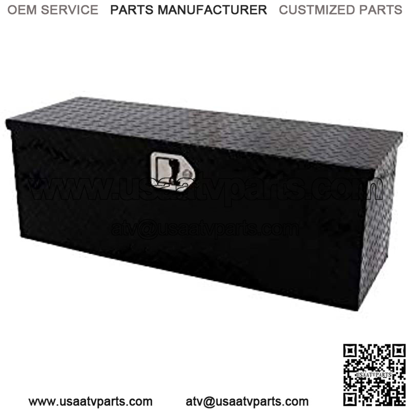 Dee Zee Tool Box – Specialty ATV/Universal Storage Chest. Constructed of durable Brite-Tread aluminum. Black Tread powder coat, provides a gloss black finish while it protects and prevents oxidation. Other features: lockable push-button handles, dampened gas shocks, closed cell foam gasket, and self-adjusting strikers. Mounting hardware included. Provides lockable storage for your ATV or anywhere else you need it.