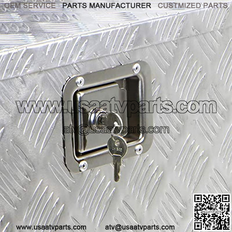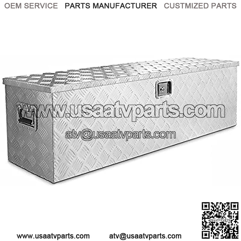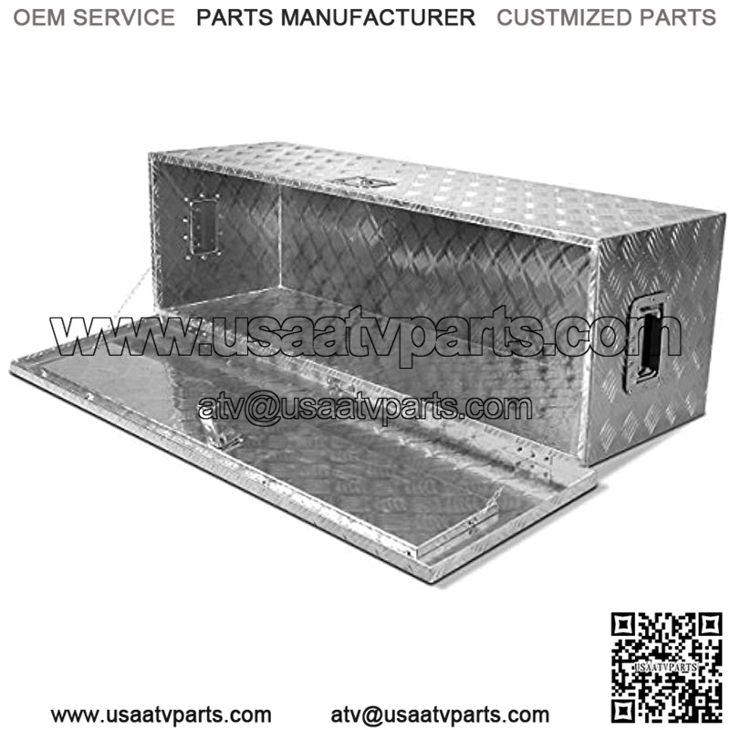 Our tool box is designed to save space and provide extra storage under your truck bed. This tool box is constructed of heavy duty textured aluminum for maximum durability. The door is reinforced with a weather-resistant seal for keeping your tools and items dry and safe. Fold down door provides full access. Built-in lock ensures all items are kept safe and secure. This aluminum underbody tool box is perfect for storing your tools in your vehicle or at home. Features: Perfect Tool Cabinet for Any Place – The tool box can be mounted on a hitch rack, cargo rack of your camper, perfect for the tongue of your enclosed trailer, suitable to be installed on the rear of your RV for extra storage Ideal Storage Box for Limited Space – We use high quality aluminum alloy material, with high strength not easy to break, and also corrosion resistance. it is very stiff and sturdy once mounted. Can serve as a sturdy box to store your garden tools, gloves, cordless tools and charger in any limited spaces Exquisite Workmanship and Smooth Surface – We pay special attention to the workmanship. In order to prevent the hand from being scratched, the welding seam between the edges of the aluminum box is very smooth and there is no protruding sharp edge Superior Anti-Slip & Durable Aluminum – The superior striped aluminum surface is not only for beauty, but also can it prevent slippage, allowing you to use the box securely and safely Include Lock & 2 Keys – This aluminum box has a lock and (2) keys so you can safely use it to prevent things from being lost Specifications: Material: Aluminum Position: Underbody Tread: 5 Bar Tread Overall Dimensions: 48″(L) x 15″(W) x 15″(H) Package Content: Aluminum Under Body Tool Box Lock Keys