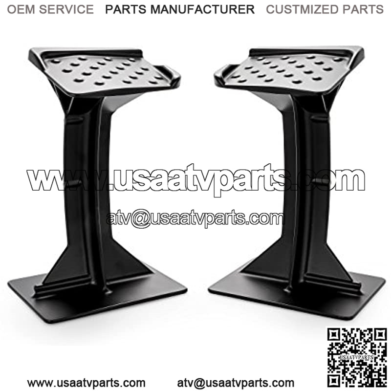 Black Boar ATV Foot Pedestals securely mount to any ATV foot board to provide a secure place to rest feet when sitting in an ATV rear lounger. The mounting surface allows you to drill holes that match the hole pattern on your ATV foot board. Pedestals are constructed of durable, powder coated cast aluminum making them extremely durable and corrosion resistant. The perforated pedestal surface helps provide a non-slip grip for feet. Includes two foot pedestals and mounting hardware.