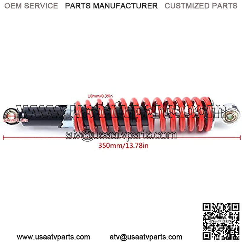 Specification:Color:RedSpring rated :500lbsTravel length: 65mmInner hole diameter: 10mmSpring thickness:10mmShock Absorber length??350mmPlacement on Vehicle:FrontFitment Type: Direct Replacement