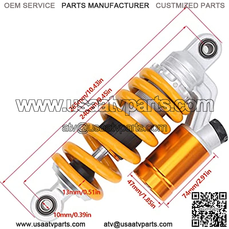 Fitment:The appearance of Shocker Suspension Spring has been polished many times, smooth and clean, anti oxidation and anti stamping. Suitable for motorcycles, off roader, ATVs, karts, etc. with 240mm /9.45in mounting diameter.