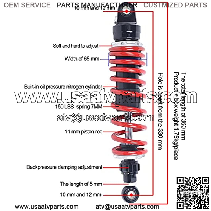 ??Eye To Eye Center:330mm??The Length Of The Screw Hole To The Screw Hole?? Eye Diameter Top:12mm+10mm Eye Diameter Bottom: 12mm +10mm