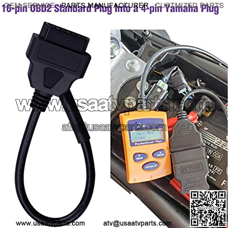 4Pin OBD2 Scan Cable for Yamaha – Diagnostic 4 Pin to OBD2 OBDII Cable Harness Adapter for Yamaha. Work with all latest motorcycle model with the 4-pin diagnostic plug, like FJR 1300, FZ09, FZ10, MT09, FZ-10, MT-10, XSR900, R6, R1, and XSR 900, XT1200ZE etc.