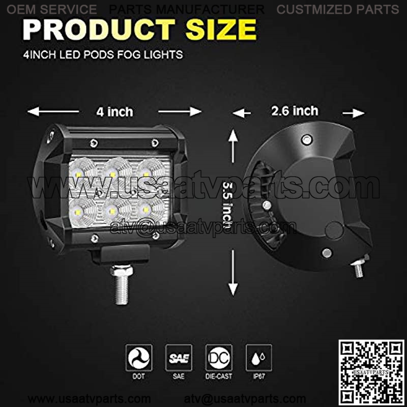 ??Package included??: 4PCS 18W LED Flood Light Pods and Mounting Brackets.Please buy with confidence,If any questions, please feel free to contact us.