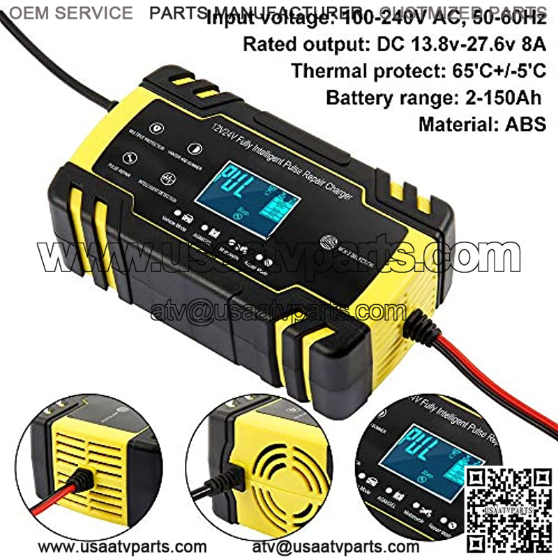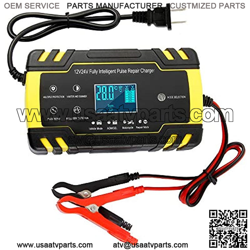 Highly Compatible: Suitable for both 12V and 24V batteries, it works with SLA, WET, MF, FLOODED, GEL, VRLA, AGM, EFB batteries, meaning that it can be used for the batteries in cars, motorcycles, boats, mowers, and others. Can be selected a mode to charger car/truck batteries, motorcycle batteries or AGM batteries.