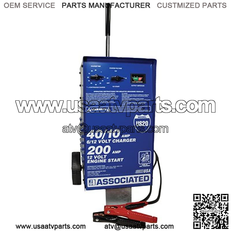 The ideal battery charger for the small shop or do-it-yourself user. Features 40 ampere continuous rating at 6/12 volts with 200 ampere cranking assist and a full 330 amps manufacturer boost rating, and a 90 minute timer. The fan cooling mechanism prevents over-heating and significantly extends the life of the charger.