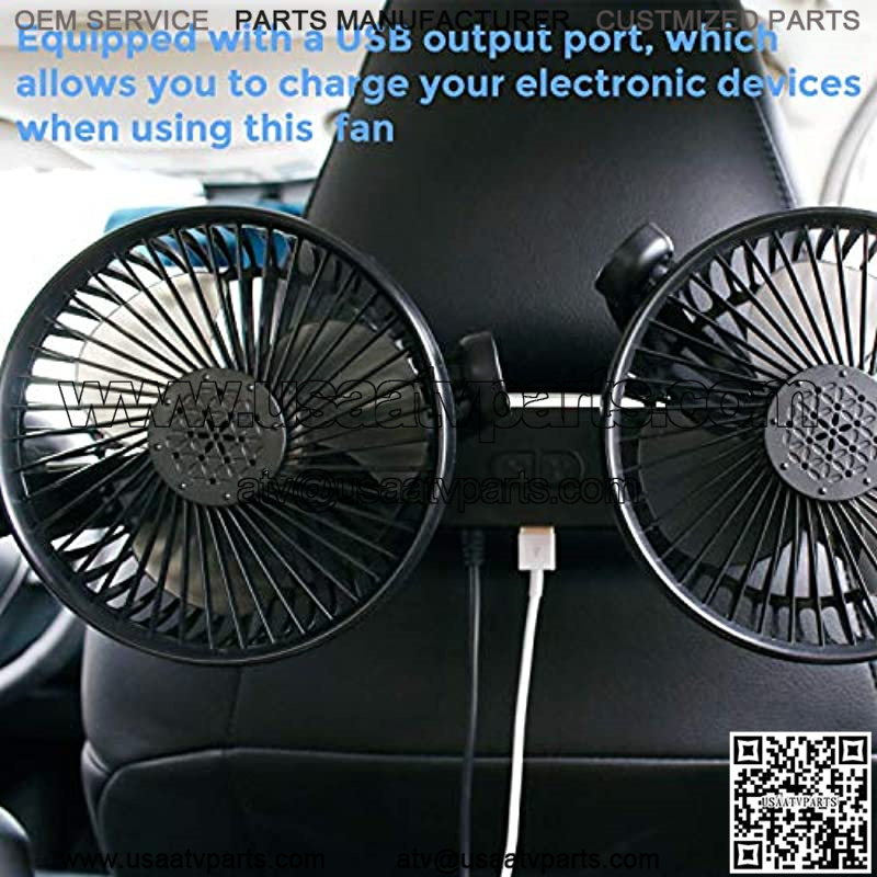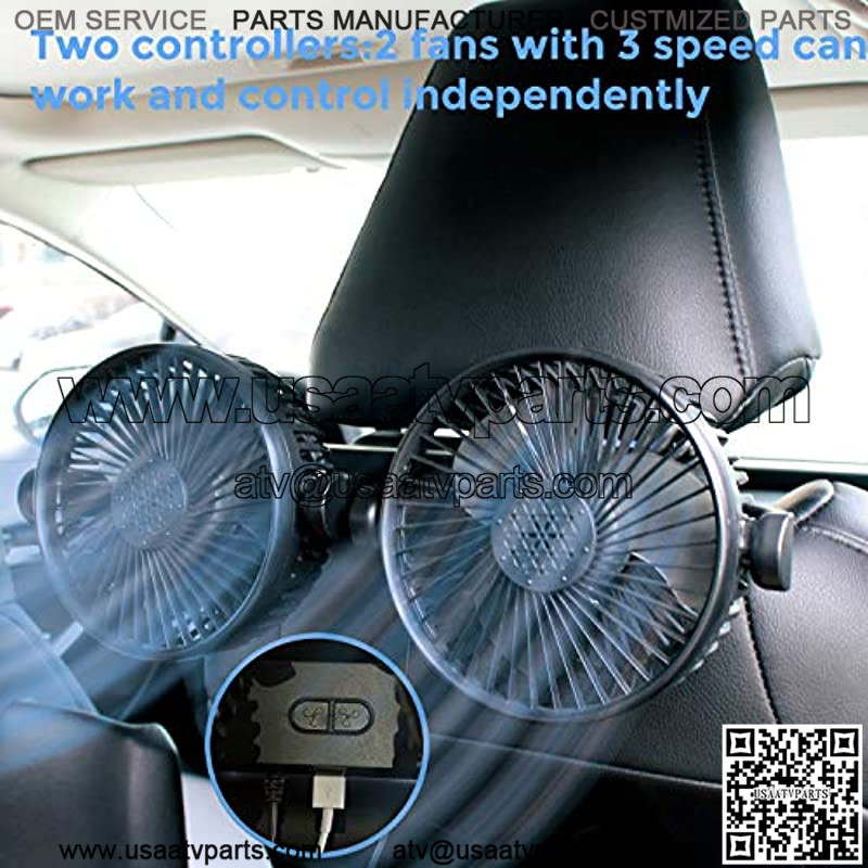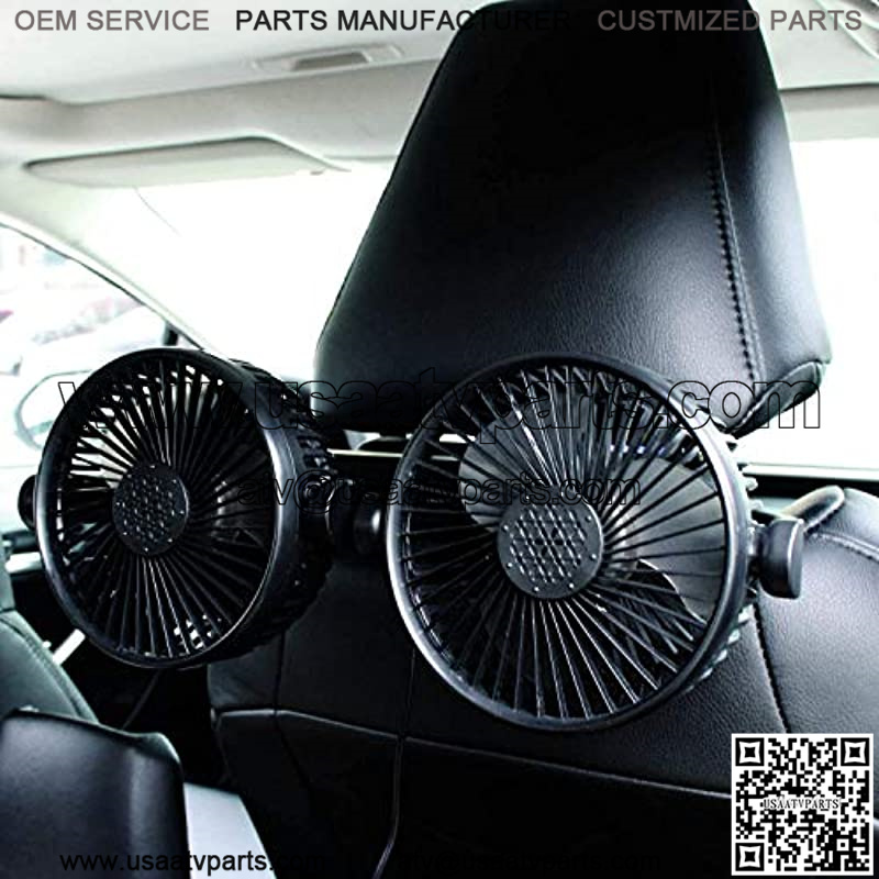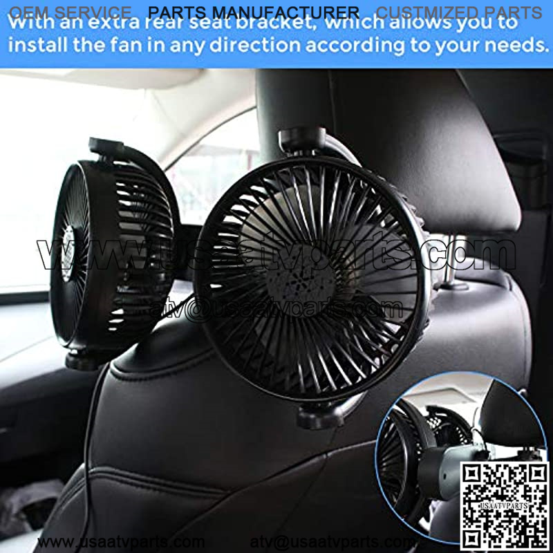 360 degree rotatable car fan,it can bring all-around the coolness.(need to adjust by yourself).It features sturdy Car Headrest Mount with lock knob to secure the fan tight grip on your seat back.