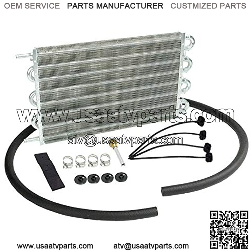 Universal transmission coolers include a durable rubber hose, a universal mounting kit.Includes 10″ slim electric fan for maximum cooling.