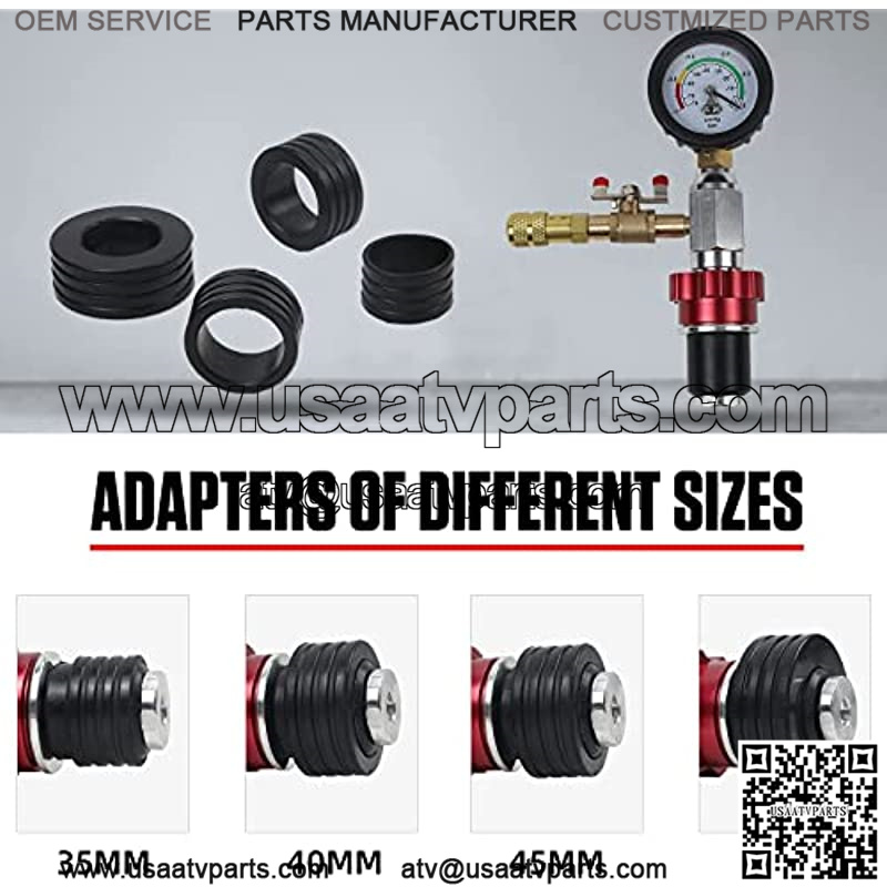 Widly Application — Equipped with a universal cone rubber adapter (diameter range 0.55-1.8inch) and glue adapter, and 4 sizes of adapter sleeves (OD 2.17inch, 1.77inch, 1.57inch, 1.38inch), the adapter can seal the cooling system, and quickly connect the coolant The connector on the injector helps to fill the antifreeze, which is suitable for most cars, SUVs and light trucks.
