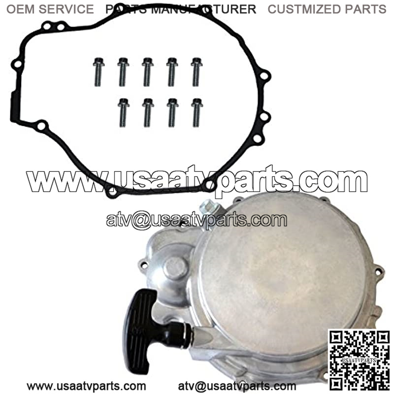 POLARIS COMPLETE RECOIL STARTER ASSEMBLY. ALREADY PRE-ASSEMBLED COMPLETE WITH HOUSING. PURCHASE INCLUDES 1X NEW COMPLETE RECOIL PULL START. 1X FREE NEW RECOIL GASKET. 2X FREE PLUG SCREWS. 2X FREE PLUG GASKET. 9X FREE MOUNTING BOLTS. REPLACES OEM NUMBER: 3090085 3083453 3082956 3084933 3084877