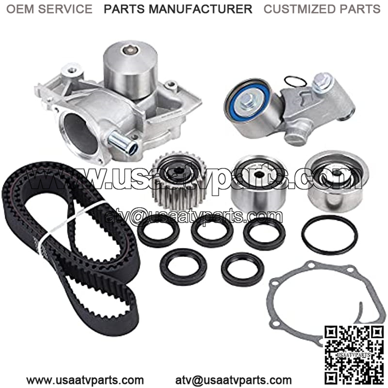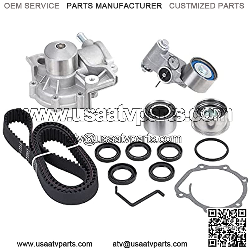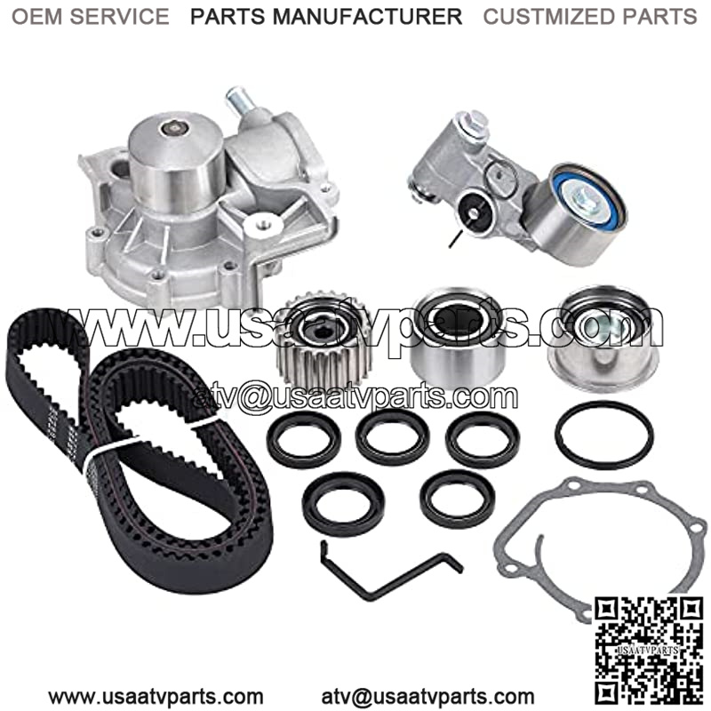 Item-Offerd: 1 Timing Belt (223 teeth); 1 GMB Tensioner assembly (tensioner bearing & hydraulic cylinder combo); 1 GMB Lower Idler (sprocket with bearing); 2 GMB Upper Idlers (left & right); 4 Camshaft Seals (32 x 45 x 8); 1 Front Crankshaft Seal (33 x 49 x 8); 1 GMB Water Pump w/ Gasket (w/ 1 hose connection)