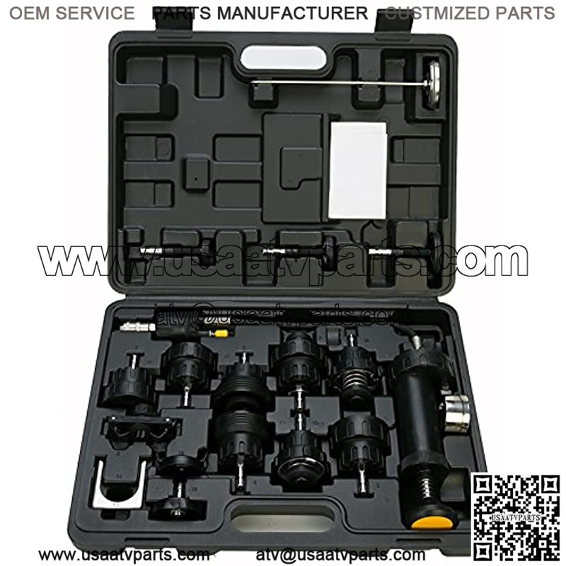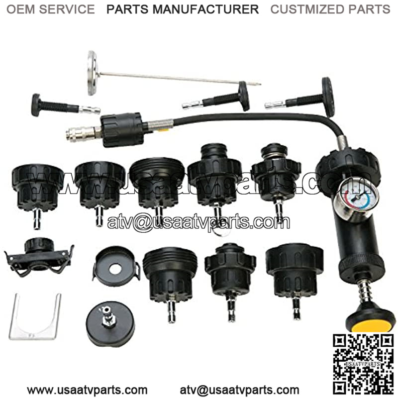 Included a Pump with gauge For testing automotive pressurized cooling systems up to 35 PSI Has 8 radiator cap adapters for servicing most domestic and import vehicles.