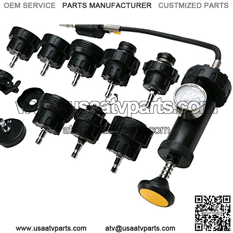 8 radiator cap adapters included, and the test range is from 0 to 35 psi, ideal for domestic and import vehicles. With the special design of purge and refill tool connection, it fits nearly all type of radiator openings.