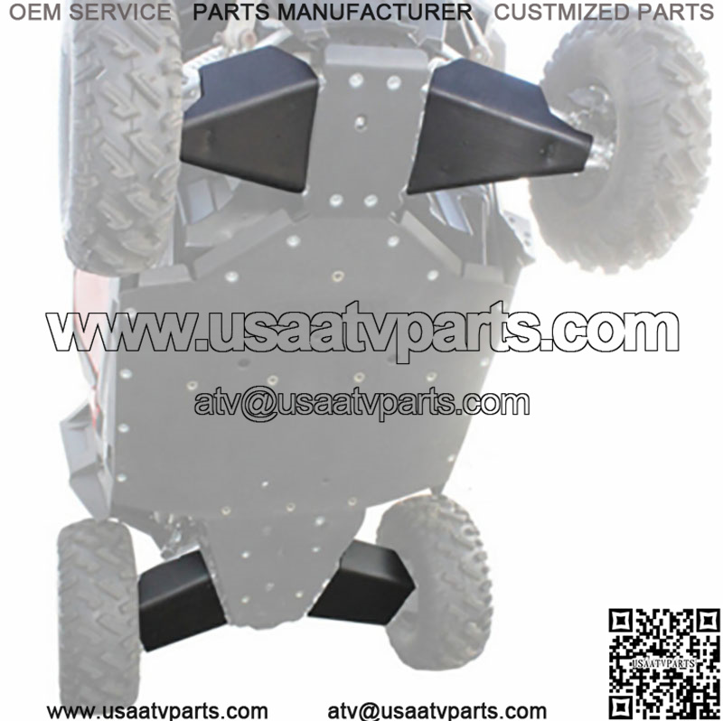 The a-arm guards come in a set of 4 – the front and rear – so your machine has protection for some of the most important suspension components. With these guards on your RZR S 900, you can get back to enjoying riding and lose the worrying. plastic is a ultra high molecular weight plastic that can absorb impact without denting, breaking or gouging like aluminum would. Also, it’s much lighter than aluminum to help keep you machine from getting to heavy with all the additional upgrades you plan on doing to it.