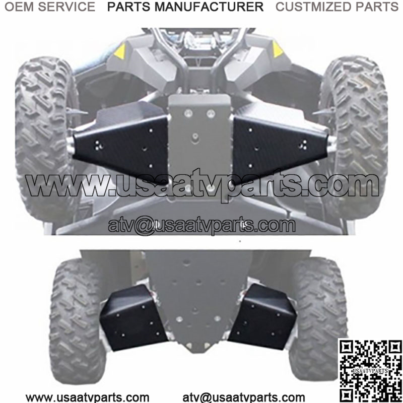 This set of four a-arm guards are formed from or Ultra High Molecular Weight Plastic. Factory UTV opted for for its impressive strength to weight ratio which offers an outstanding stance against bending, breaking and gouging by absorbing hard impacts. The guards are significantly lighter than traditional aluminum while outlasting carbon steel 10 to 1. Order your set of aftermarket a-arm guards from Side By Side Stuff today!