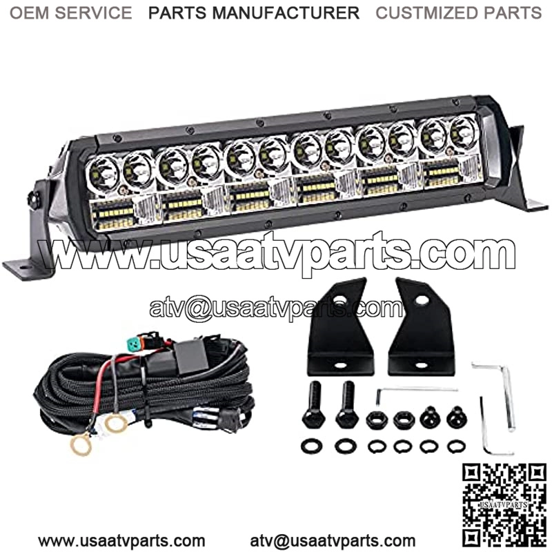 EXTREMELY BRIGHT – This 12 inch LED pods light adopts advanced led chips, providing 6500K super bright cold light for clear visibility. The 15?? spot & 170?? flood optic system provides a wider and further illumination range, you can enjoy a safer driving experience with our light bar.EFFICIENT HEAT DISATION – Heavy duty 6063 aluminum alloy housing, cooling fins to maximize surface area for optimum cooling, the 12 inch led pod can serve you for up to 50,000 hours!IP68 Waterproof – This LED light bar is IP68 waterproof certified, which means it is waterproof, dust-proof and shock-resistant. The all-aluminum housing protects against harsh environments like rain, wind, sand during off road travel.WIDE APPLICATION – 12in work light bar coming with two adjustable brackets,you can control the angle as you need,it fit for all vehicle with DC9-30V(Truck, Car, Motorcycle, SUV, ATV, Boat),suitable for travel,home lighting,adventure and transportation.BUY WITH CONFIDENCE – Box comes with 12in LE