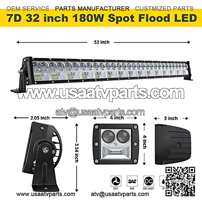 Led Light Bar 32 Inch 180W Spot Flood Combo Beam Led Bar +3 Inch 18W Off Road Driving Fog Lights W/Wiring Harness for Trucks SUV Jeep ATV UTV Boats