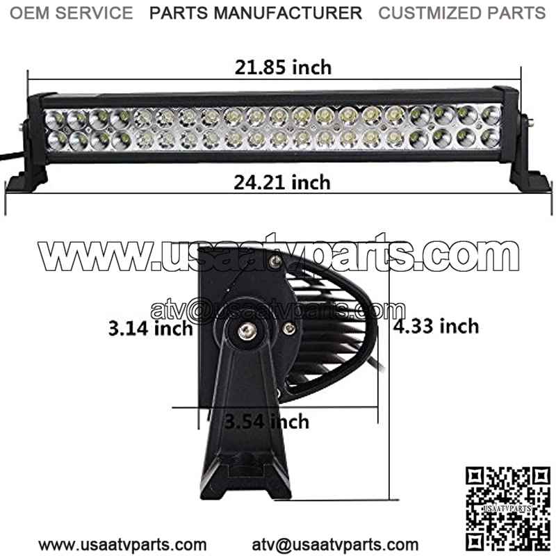 22″ 120W Spot-Flood Combo LED Light Bar, 40 x 3 Watt high power white LEDs at 6,000K color temperature with 8880 Lumens Tough Design: Black painted high quality aluminum housing, stainless steel adjustable mounting bracket and shatterproof lenses with IP67 waterproof, durable to withstand any harsh condition. Great performance of waterproof, dustproof, shockproof and anti-corrosion in extreme weather condition. Long Lifespan: Eco-friendly low power consumption design with integral heatsink for longer lifespan, rated at 30,000 hours. DC 10V-30V operating voltage range: It can apply to different types of trucks, Off-road vehicles,4×4, SUV, Mining, Boating, Farming and Heavy Equipment etc. Package Contents: 1x Light 120W Waterproof Spot-Flood Combo LED Light Bar, Mounting Brackets, Screws Set and 12 Month Worry-free Warranty