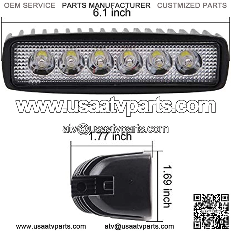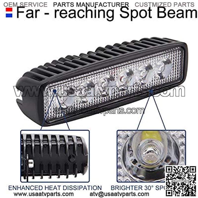 2 Pack: 2x High Powered Spot LED Work Light Bar Strip, 6 x 3 Watt high power & high intensity White LEDs at 6,000K color temperature with 1320 Lumens.
