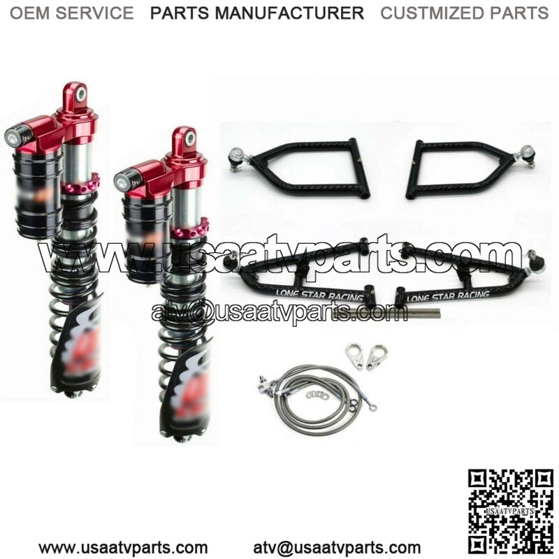 Stage 3 Legacy Plus Front with Lonestar +2 +1″ Sport A-Arms and Streamline Brake Lines and ClampsFits: Yamaha Banshee (All Years)Stage 3 shocks are 3 way fully adjustable for compression, rebound and preload adjust.A-arms: Available in Black, Candy red, Candy Blue, Silver or White (your choice)Shocks are custom built to order. They will be setup to your rider weight and riding style. They will also be setup for the brand/model of a-arms that you have your atv, that includes all a-arms from stock to long travel. *** Shocks are custom built to order and take 1-3 weeks before shipping. **