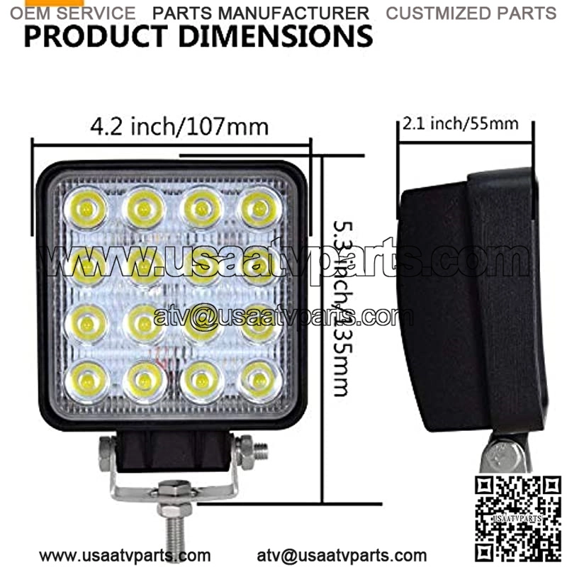 Luces de trabajo LED, 2 piezas de 4 pulgadas 48 W cuadrado inundacin barra de luz LED luz de conduccin diurna IP67 resistente al agua para tractor Offroad JK 4×4 4WD Camin ATV UTV SUV 12V-24V
