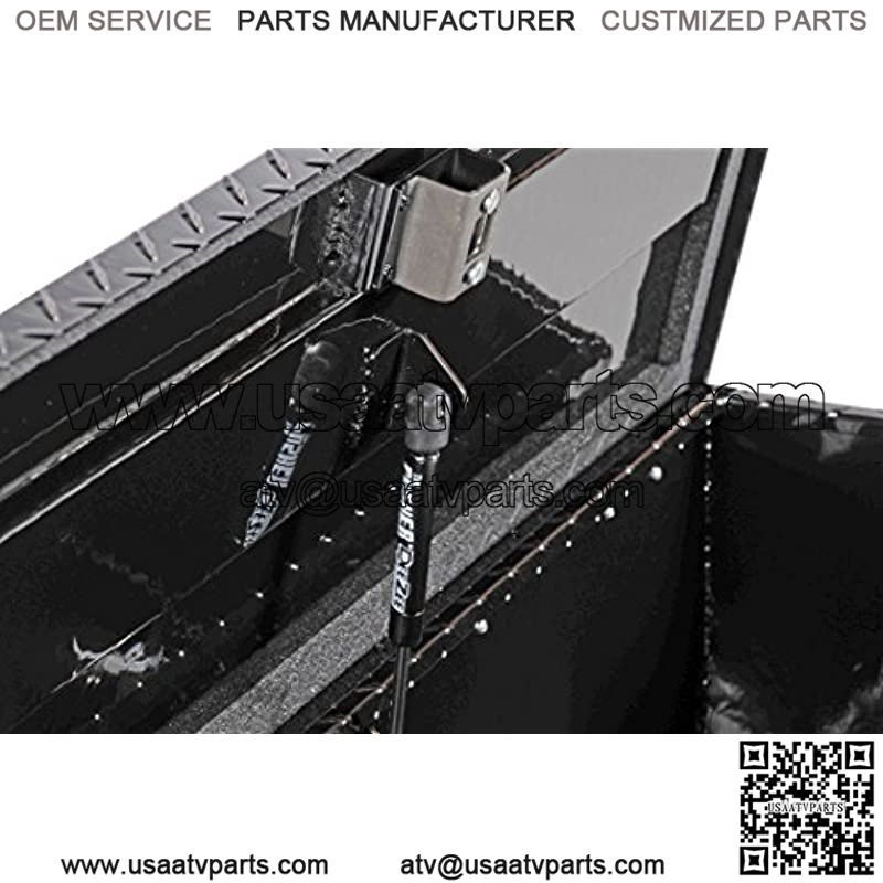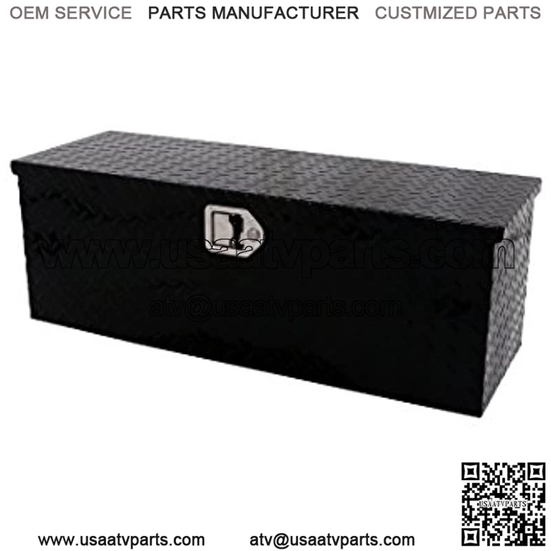 Tool Box – Specialty ATV/Universal Storage Chest. Constructed of durable Brite-Tread aluminum. Black Tread powder coat, provides a gloss black finish while it protects and prevents oxidation. Other features: lockable push-button handles, dampened gas shocks, closed cell foam gasket, and self-adjusting strikers. Mounting hardware included. Provides lockable storage for your ATV or anywhere else you need it.