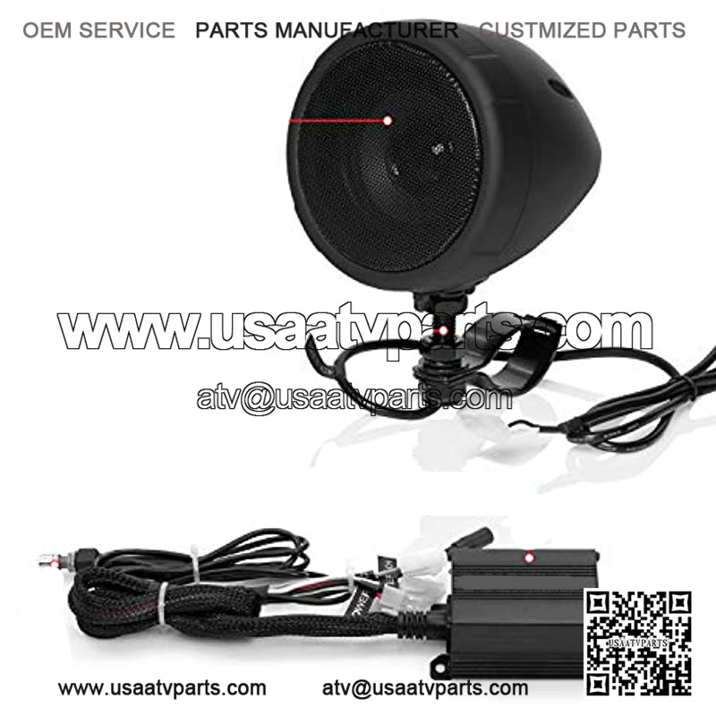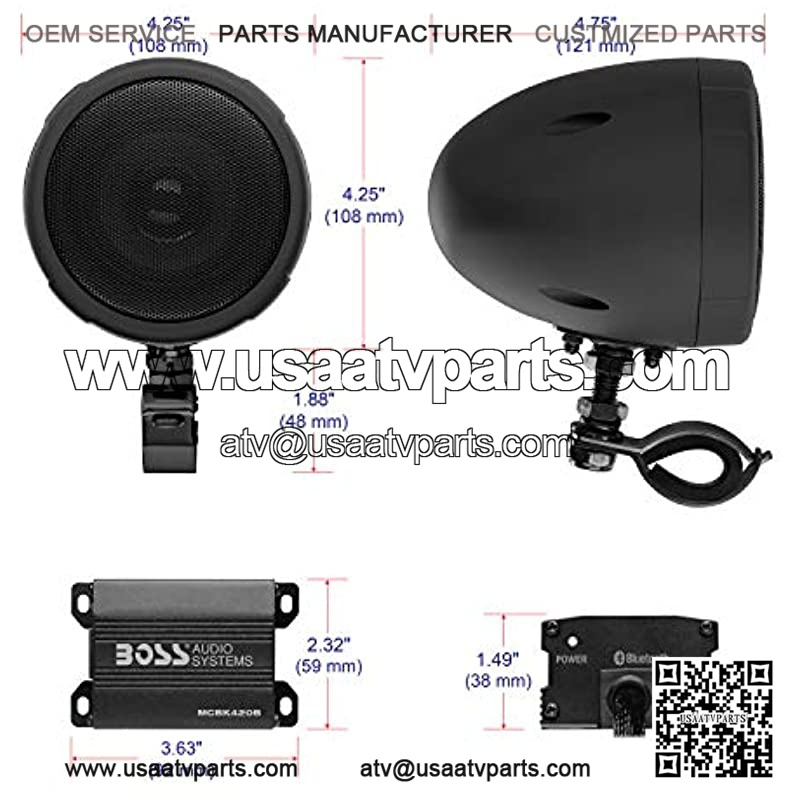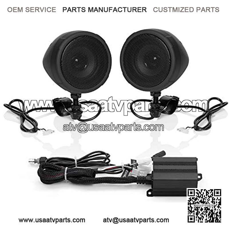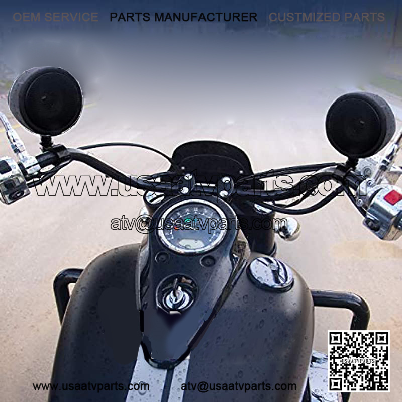 SPEAKERS: Also included are two 3-inch matte black full range speakers. The adjustable brackets will fit handlebars from ranging from .75?? to 1.25??