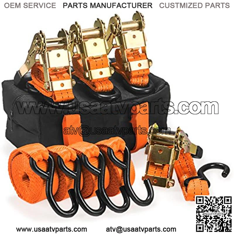 Moto Heavy Duty Motorcycle Tie Down Straps. 1.5 in X 10 Ft. 3300Lb Break Str. Heavy Duty Ratchet Strap Set. Motorcycle Straps. Cargo, ATV / UTV Tie Down Straps. Hi Vis Orange
