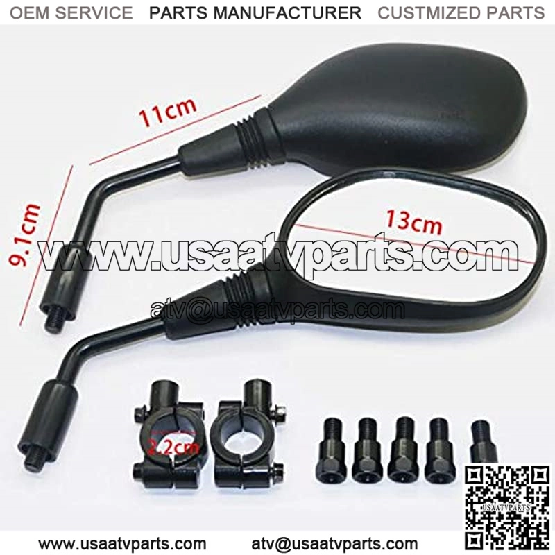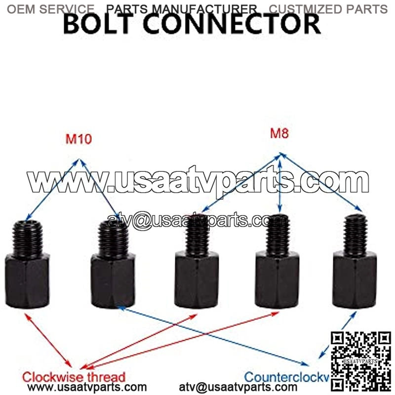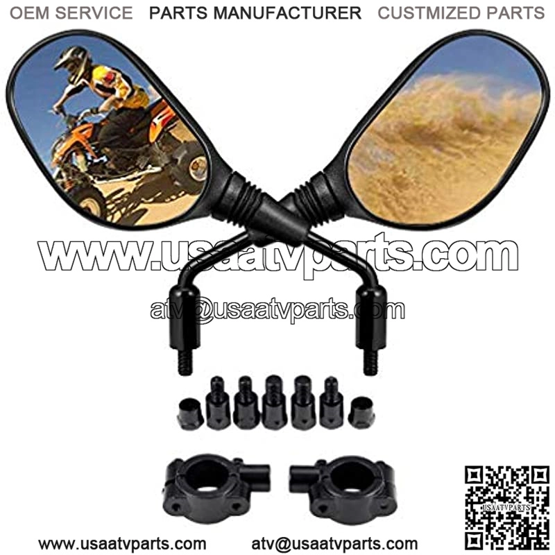 ??Basic Function??These side view mirrors equipped 3 accessories. 7/8″ handlebar mount for those ATV which don??t have mounts for mirrors. 10mm to 8mm RH/RH and 10mm to 10mm RH/LH screws are equipped for bikes with mirror mounts. ??Durable and Safety??Our mirrors with larger protective rubber sleeve keep the interfaces away from rain,mud and snow, making them prevent rust and also help to reduce buffer. ??Easy Installation??360 Degree Firm Rotating Joint for Adapting All View Angle ??Durability and Sturdy??Adopted high impact ABS housing and Plastic, along with shockproof feature. Custom eye-catching look, make your bike more attractive & outstanding. ??Widen Your Vision??Our high-definition rear view mirrors provide you undistorted and ultra-clear images and convex mirrors widen your vision, helping to reduce blind spots and ensure your driving