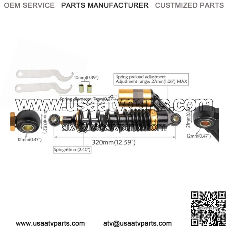 Motorcycle 320mm Rear Shock Absorbers Damper Fits For Honda Kawasaki Suzuki