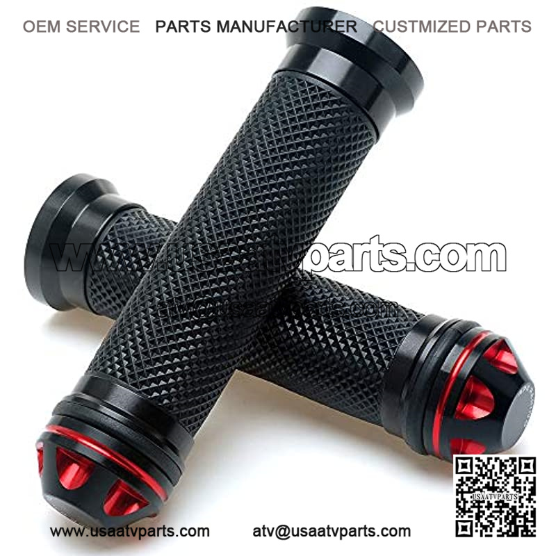 Motorcycle 7/8″ Hand Grips – Universal Gel Rubber CNC Billet Aluminum Handlebar Grip With Bar End For 7/8″ Handle bar ATV Motorcycle