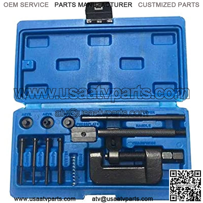 Motorcycle Chain Rivet Tool Kit 13-Piece Set with Blue Carrying Case Motorcycle Bike Chain Breaker Set Cutter Rivet Tool Kits 520/525/530/630 Pitch Sturdy Design