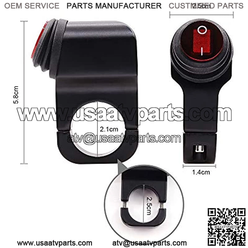 The handlebar switch fits for handles with a diameter of 22-23mm (7/8 inch), and the working voltage is DC12V.