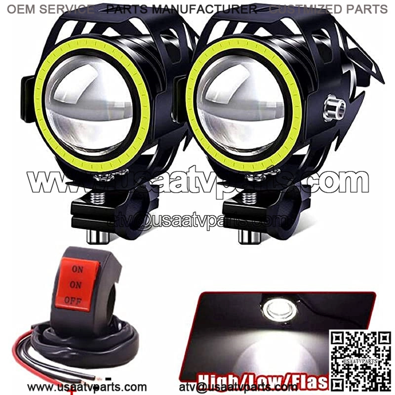 Motorcycle Lights Halo Ring Fog Spotlight Daytime Running Lights, White Hi/Low Beam/Strobe Modes U7 LED Front Headlight DRL Auxiliary Driving Lights With Switch